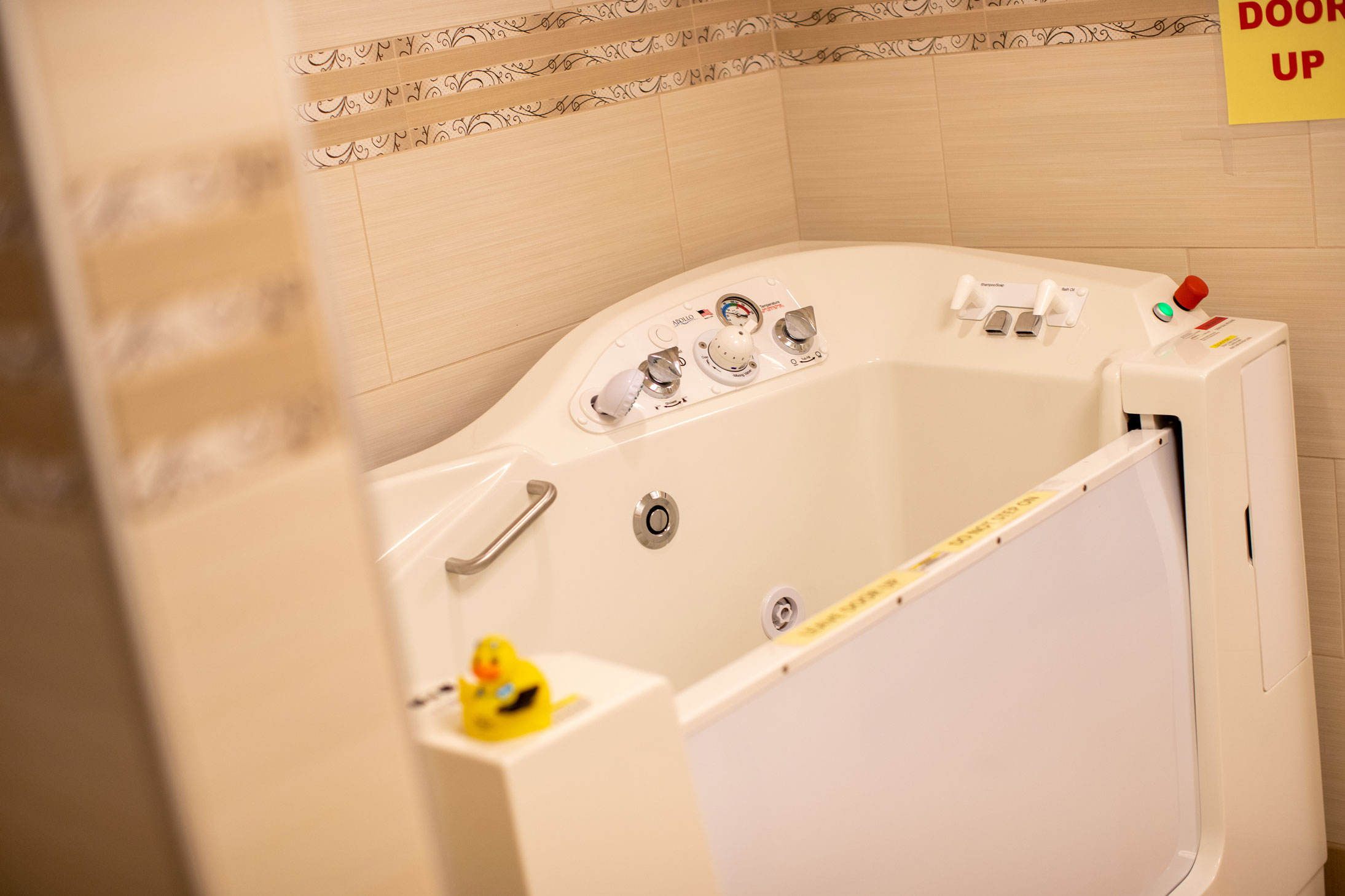 At our spa room, your loved one can rest and relax, enjoying a walk-in bathtub, essential oils, and soothing music. Rest assured, knowing our team is always on standby to help and pamper your loved one.